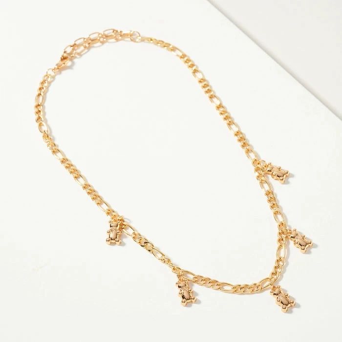 Β Teddy bear charms necklace Approx: 15″ Material: Zinc, Brass, gold plated Lead Compliant, Nickel Free To prevent tarnishing, please avoid wet substance