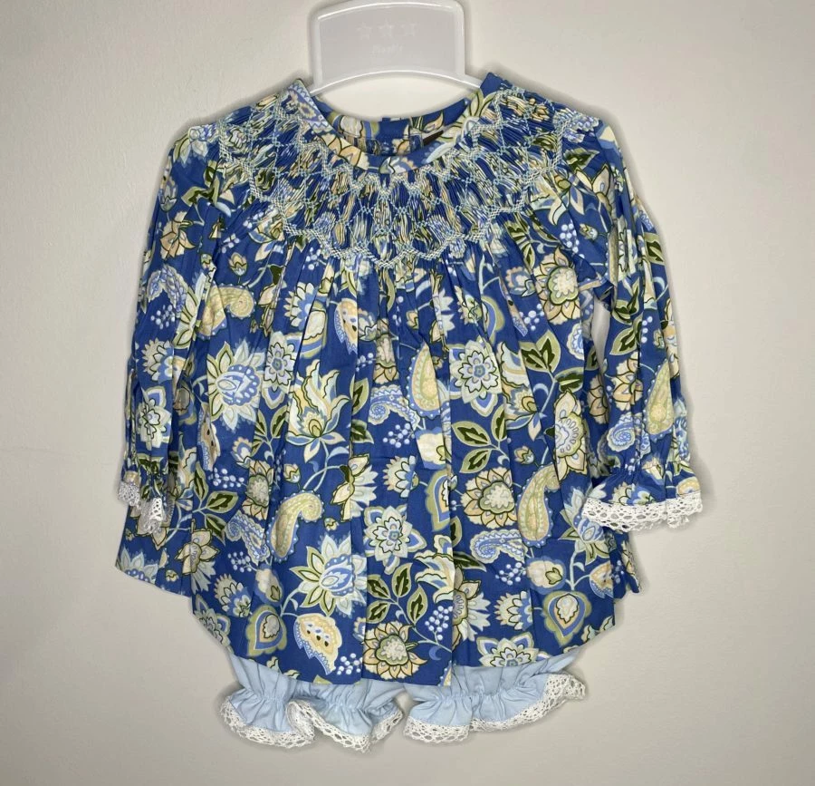 Outlet π Banana Split Blue Paisley π Dress & Bloomer Baby Clothes β