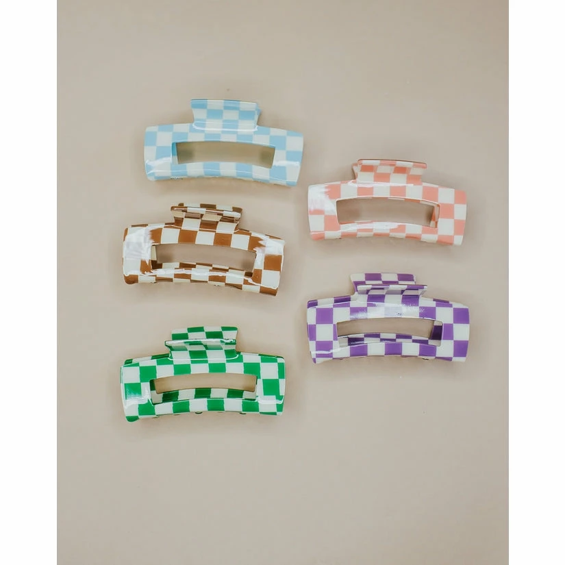 This is our largest hair clawΒ Coming in at 4in long and almost 2in wide, this hair claw is going to hold a little or a lot of hair! Checker detail is epic and will go with anything you wear this summer.