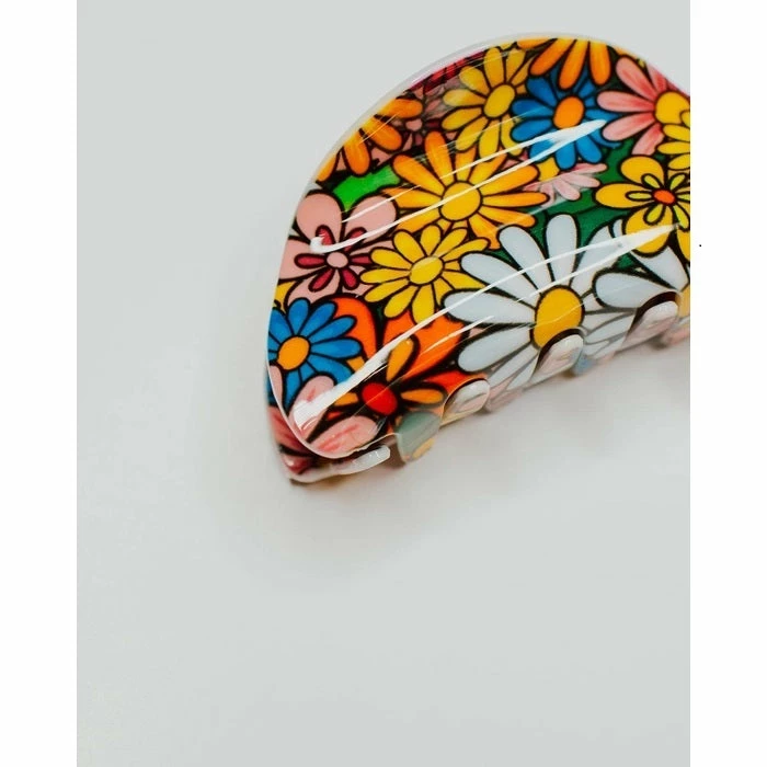 Flower Power Hair Claw 8.5cm Plastic resin hair claw with groovy floral print design