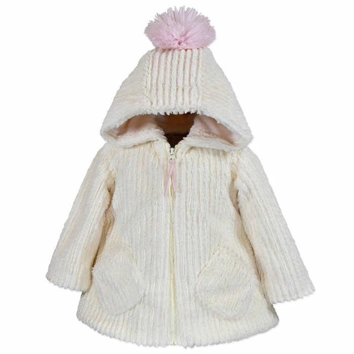 Zipper Closure, PomPon Detail at top of Hood, Faux Fur Lining, Patch Pocket, Machine Wash, 100% Polyester
