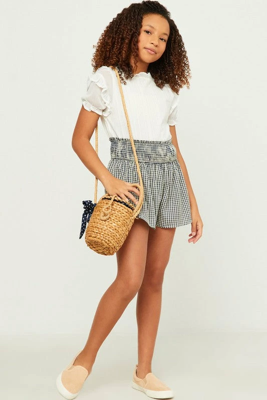 Girls Gingham Print Smocked Waist Shorts *Gingham Printed Fabric *Smocked Waist *Wide Leg