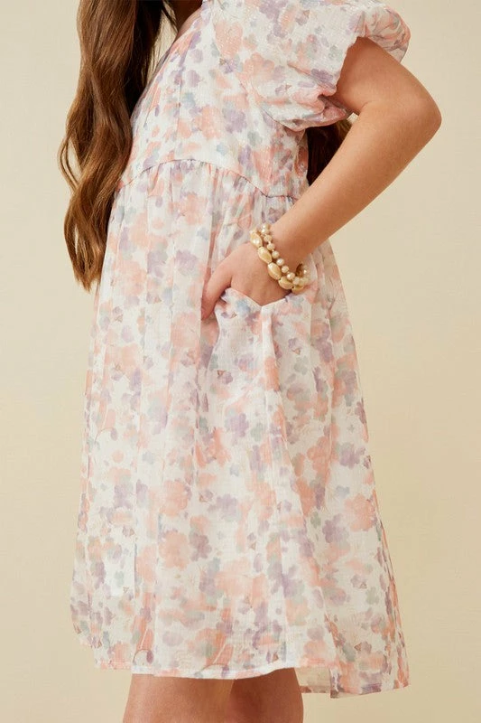 Hayden Girls Watercolor Print Smocked Back Trumpet Sleeve Dress
