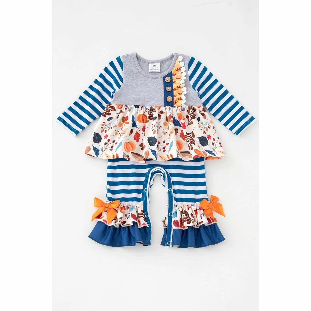 Hot Sale 🧨 Honeydew Blue Pumpkin Floral Ruffle Romper 😀