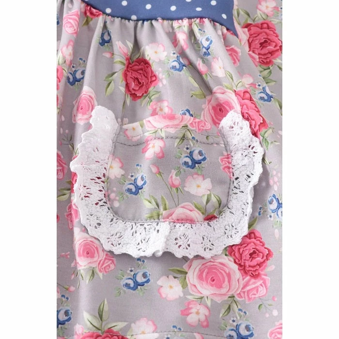 Grey & PinkΒ floral print pocket girl set 95%COTTON5%SPANDEX