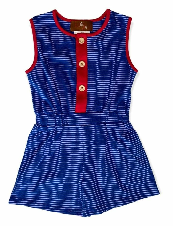 Hot Sale πŸ‘ Millie Jay Royal Stripe Lilly Romper πŸ‘§ Girls πŸ›’