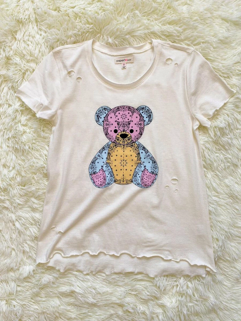 Wholesale π Paper Flower Colorful Bear Distressed Tee Tween π―