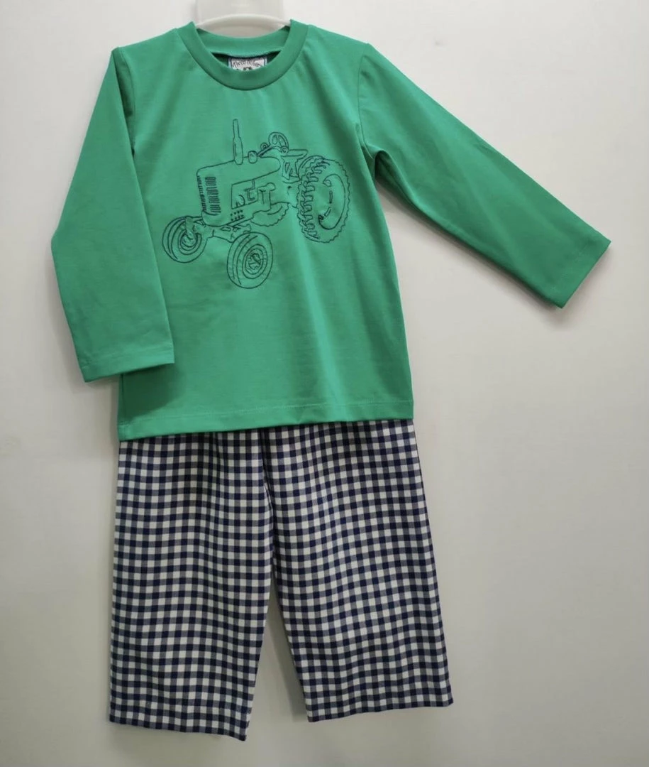 Best Sale π― Three Sisters Tractor Check Pant Set Boys π€©