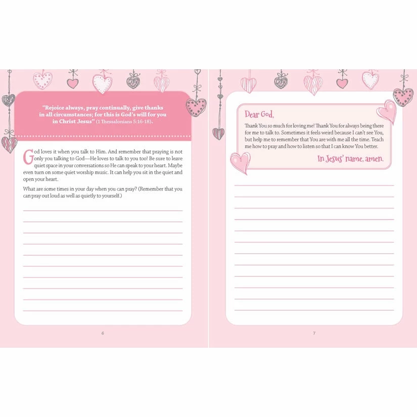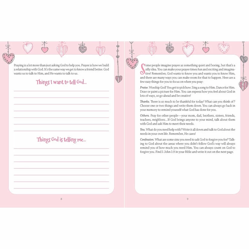 You’re God’s Girl! Prayer Journal. Help Her Develop a Vibrant Prayer Life Consistent prayer is one of the keys to a strong relationship with Christ. This journal is designed to give girls ages 8 to 12 a fun and special place to write down their thoughts, prayers, and answers to prayer. Girls will learn that prayer isnβt confusing or complicated, but simply having a conversation with Godβtelling Him whatβs on their mind and heart and receiving truth from Him. Now girls can also record what God is telling them in their own fun and personalized prayer journal. Each entry includes a short prayer, an inspiring thought, a verse of Scripture, or a writing promptβ¦and plenty of open space to write down their responses. Give the special tween girl in your life this valuable tool she can use to grow closer to God and experience all that He has in store for her through the power of prayer.