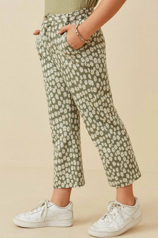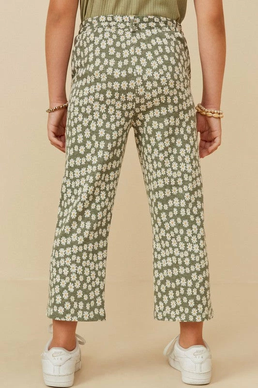 Hayden Girls French Terry Daisy Print Wide Leg Knit Pants *Floral Knit Fabric *Functional Front Button & Zipper *Straight Leg