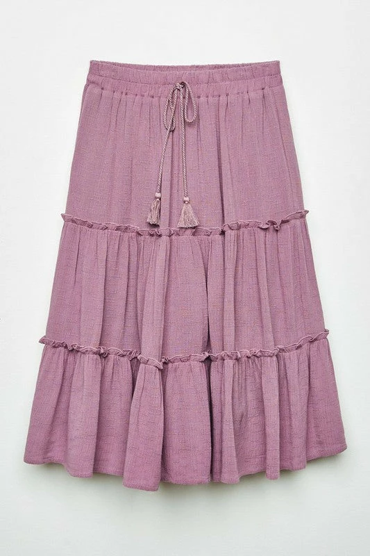 Hayden Girls Tasseled Midi Skirt *Crinkled Gauze Fabric *Decorative Tassel String *Skirt Fully Lined