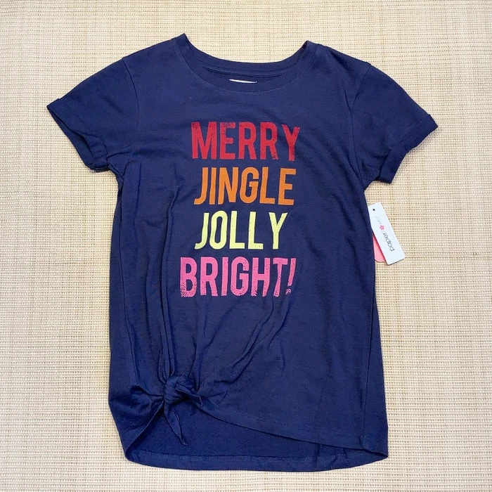 Paper Flower Merry Jingle Jolly Bright. This is a dark navy tee.