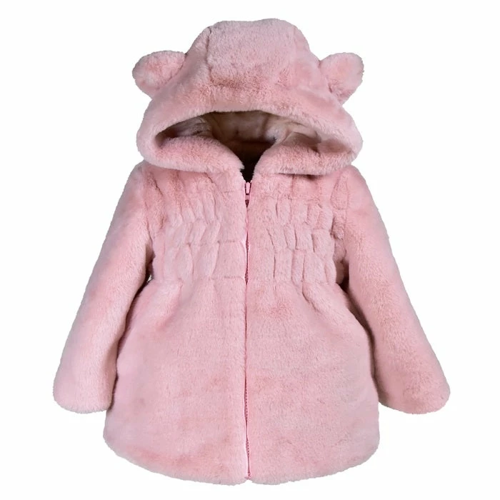100% Polyester Ruched Ear Coat Hooded Zipper Faux Fur Lining Ear Hooded Coat Side Seam Pocket Imported